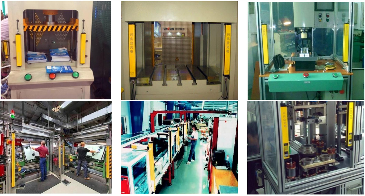 各自自動化設備、鍛壓機床、剪切機器、液壓機械、機器人、工業(yè)機械手、包裝設備、生產流水線、立體車庫及其它自動化設備,也可用于多面區(qū)域保護或防盜等。